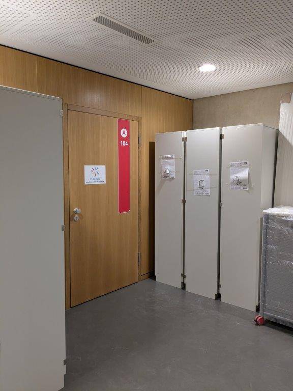 Er ist oben im 2. Stock neben der Vorklasse und ist so groß wie ein Klassenraum, man kann aber auch mit einer Trennwand zwei kleine Räume aus ihm machen.